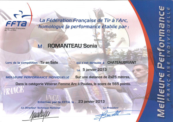Les Podiums Nationaux des archres du S.A.R. |